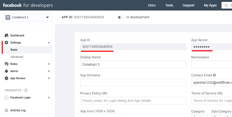 - Copy App ID, App Secret